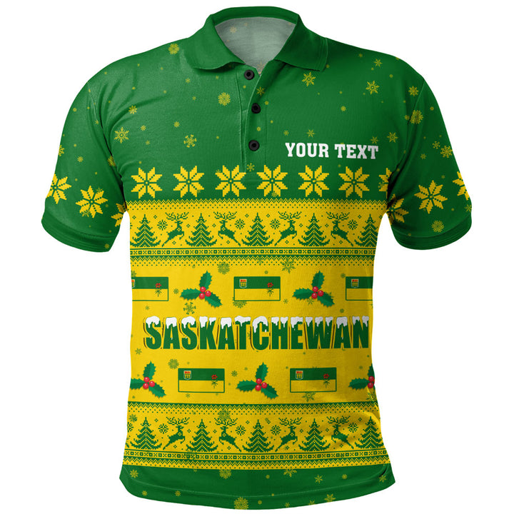 Saskatchewan Polo Shirt Christmas Knit Style Snowflake Reindeer