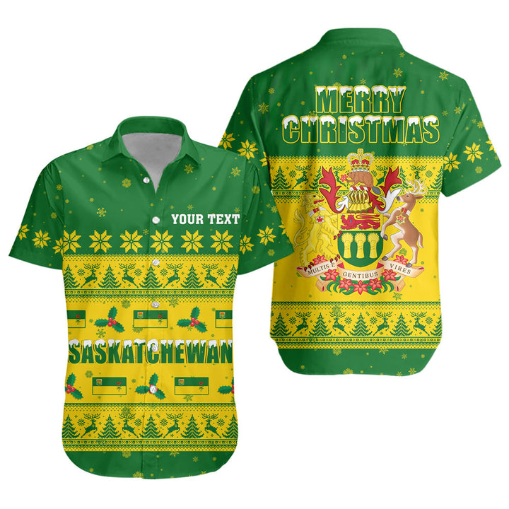 Saskatchewan Short Sleeve Shirt Christmas Knit Style Snowflake Reindeer