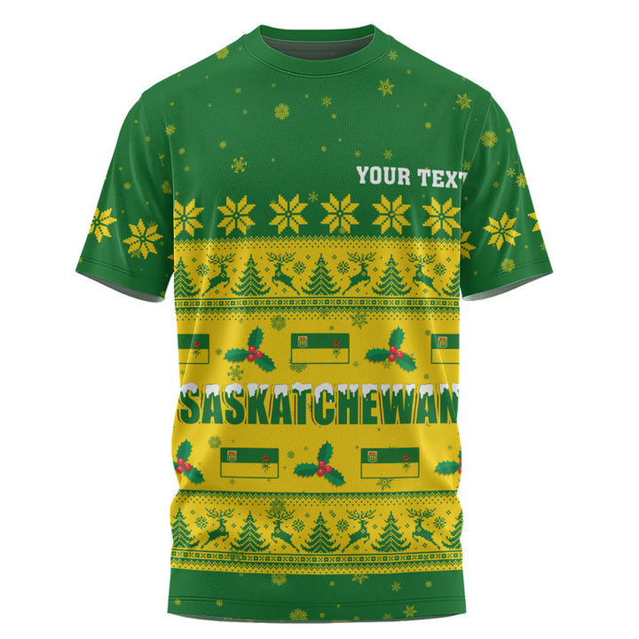 Saskatchewan T-Shirt Christmas Knit Style Snowflake Reindeer