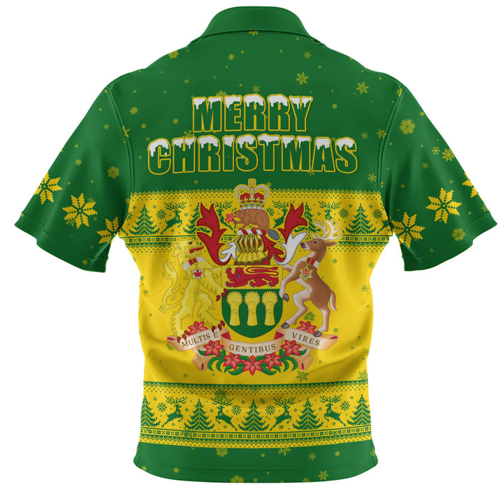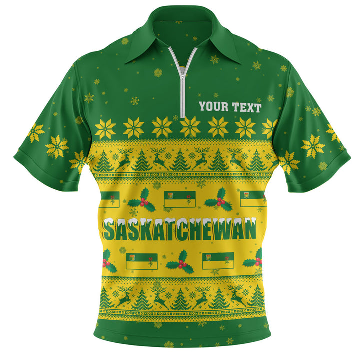 Saskatchewan Zip Polo Shirt Christmas Knit Style Snowflake Reindeer