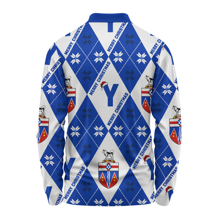 Yukon Long Sleeve Polo Shirt Christmas Argyle Pattern With Royal Crest