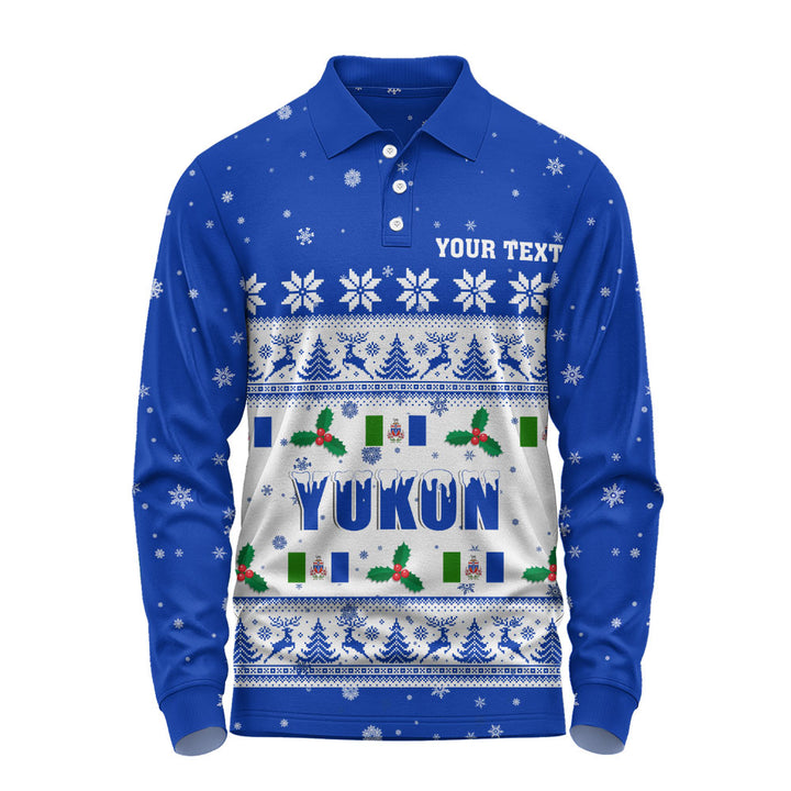 Yukon Long Sleeve Polo Shirt Christmas Knit Style Snowflake Reindeer