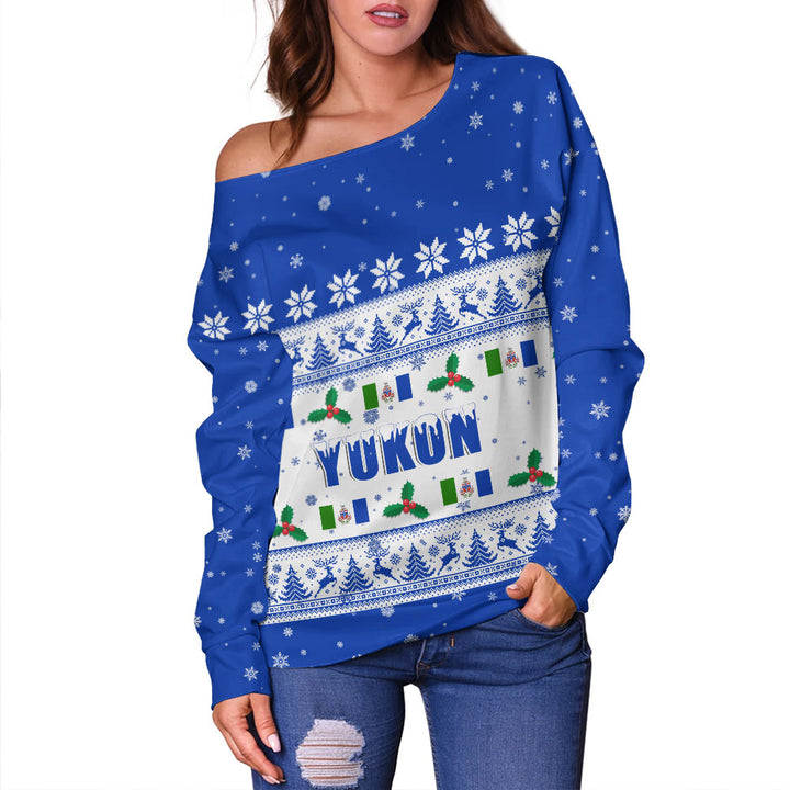 Yukon Off Shoulder Sweatshirt Christmas Knit Style Snowflake Reindeer